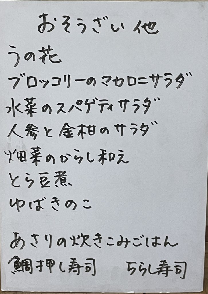 2026年1月17日 / 最終更新日 : 2026年1月17日 kushitani 今日のおすすめ 1月17日(土)のメニュー 今日も暖かい1日になりそうですね! サラダ色々作る予定です。 魚の種類はやっぱり少なくなっていて、すみません! 共有:Facebookいいね:いいね 読み込み中…