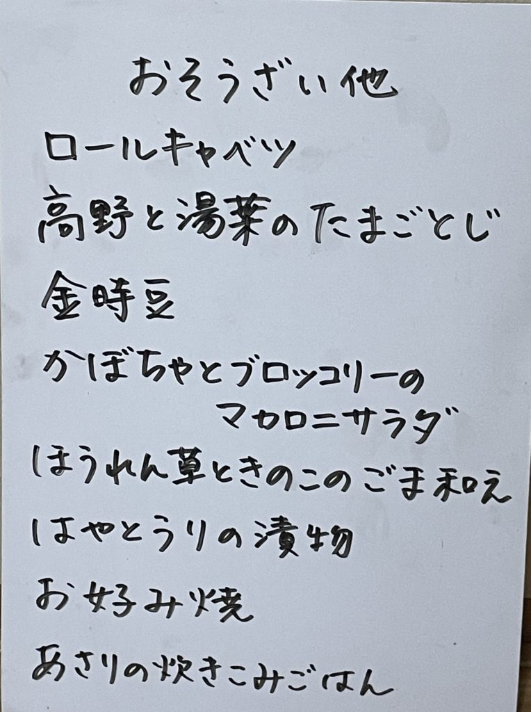 2025年12月9日 / 最終更新日 : 2025年12月9日 kushitani 今日のおすすめ 12月9日(火)のメニュー 今日はお好み焼を作りました! ロールキャベツも準備していますので、よろしくお願いします。 お正月商品のご注文も承り中です。 共有:Facebookいいね:いいね 読み込み中…