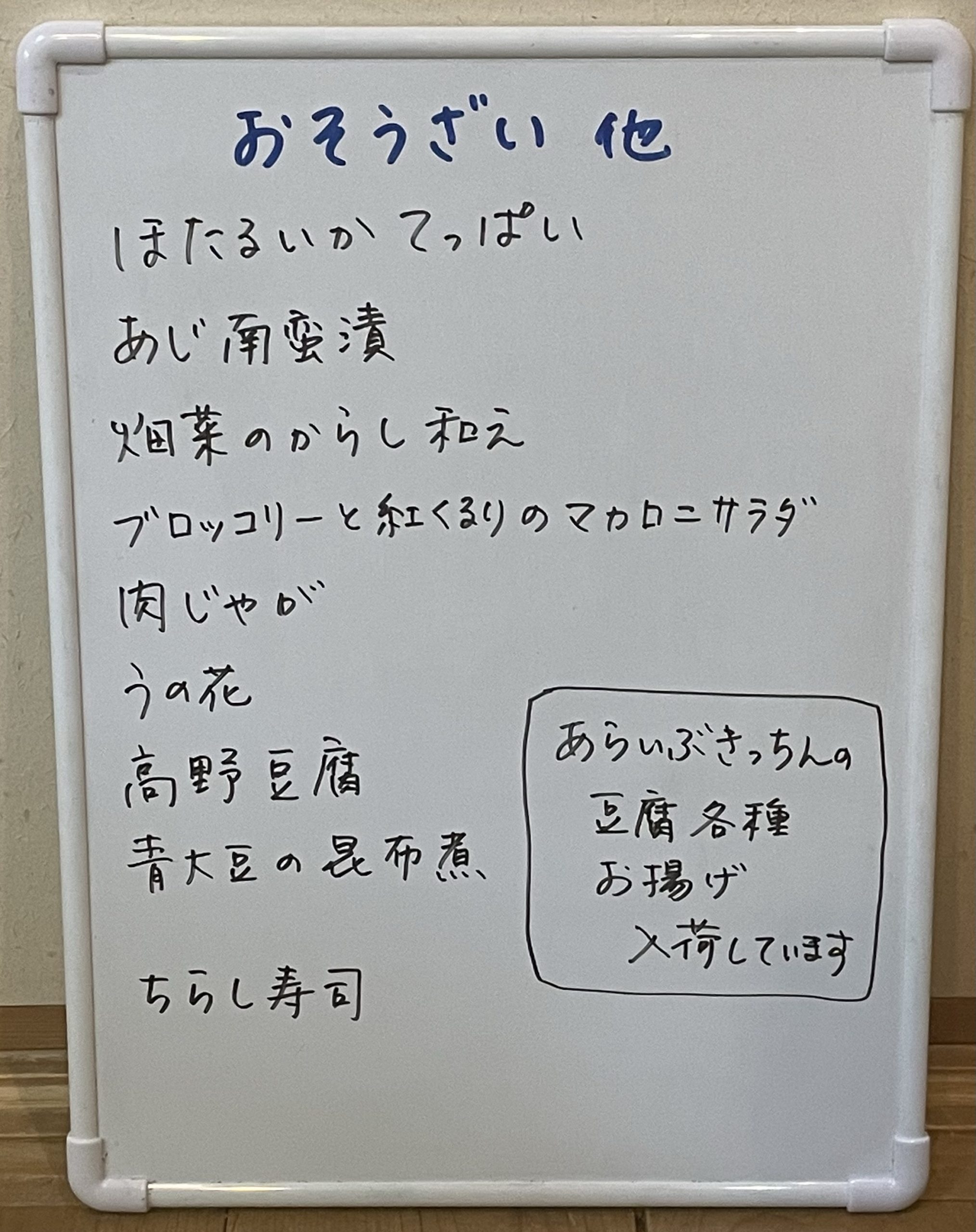 2022年3月10日 / 最終更新日 : 2022年3月10日 kushitani 今日のおすすめ 3月10日のメニュー 今日はあらいぶきっちんのお豆腐、お揚げが届いています! 共有:Facebookいいね:いいね 読み込み中…