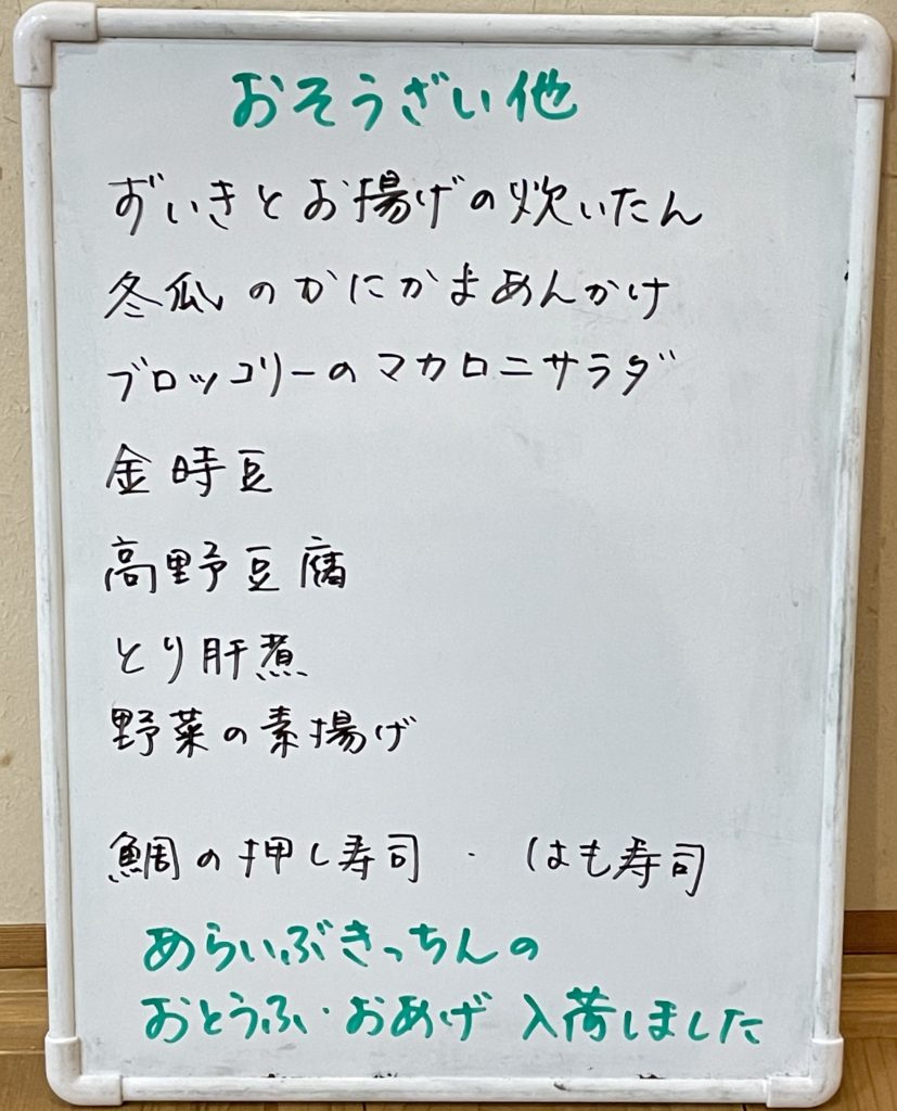 2022年9月29日 / 最終更新日 : 2022年9月29日 kushitani 今日のおすすめ 9月29日のメニュー 今日はあらいぶきっちんのお豆腐とお揚げの入荷日です。 共有:Facebookいいね:いいね 読み込み中…